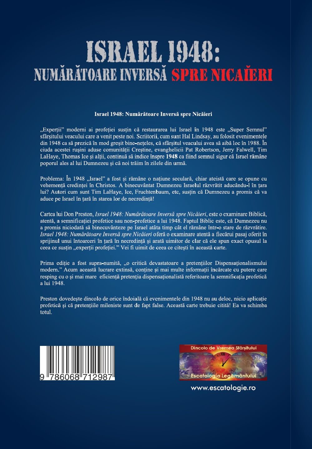 Această carte se adresează pretenției răspândite, precum că Biblia a prezis două strângeri ale lui Israel în vremea sfârșitului: una în necredință (1948) și alta în credință. Nu putem supra-accentua cât de importante sunt evenimentele din 1948 pentru schema Milenistă. Deci, în timp ce comentariile noastre se vor adresa în mod specific pretențiilor găsite în lucrarea dispensaționalistului Thomas Ice, Charting the End Times, (n.tr. Schițând vremurile din urmă), trebuie înțeles că perspectivele lor sunt valabile pentru o mare parte a lumii mileniste. A infirma Charting the End Times înseamnă a infirma Milenismul. Biblia nu a prezis o strângere a lui Israel în necredință în 1948 și vom încerca să dovedim că așa stau lucrurile.